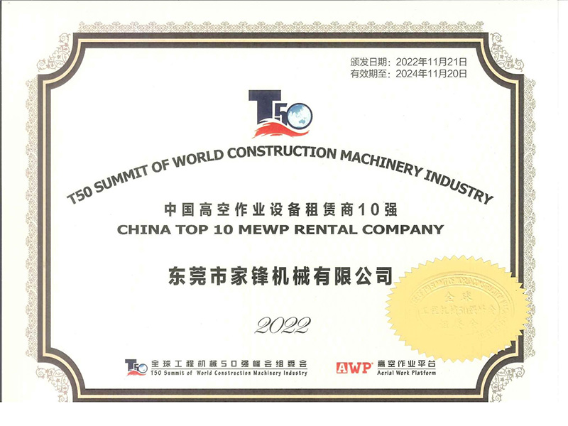 東莞市家鋒機械有限公司成立于2016年,是專業(yè)的高空作業(yè)平臺租賃、銷售服務(wù)商,擁有徐工、中聯(lián)、吉尼、捷爾杰等國內(nèi)外知名品牌的高空作業(yè)設(shè)備八千多臺,連續(xù)四屆榮膺“中國高空作業(yè)設(shè)備租賃商十強企業(yè)”及“中國高空作業(yè)平臺租賃業(yè)十大品牌”,并于2021年首次榮膺“中國工程機械租賃商十強”,是立足華南、輻射全國、規(guī)模大、服務(wù)優(yōu),極具競爭力和影響力的企業(yè)。短短幾年,已相繼與世界機械巨頭徐工集團、中聯(lián)重科達成戰(zhàn)略合作。